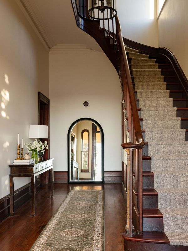 The beautiful fully renovated homestead is stylishly furnished to compliment the age, elegance and charm of the property. The homestead whispers romance with the stunning red cedar staircase and timber panelling still in original condition. Beautiful fireplaces, high ceilings crowned with intricate cornices and gorgeous polished timber floorboards feature throughout. Thoughtfully curated antique furniture adds a touch of sophistication and charm.
